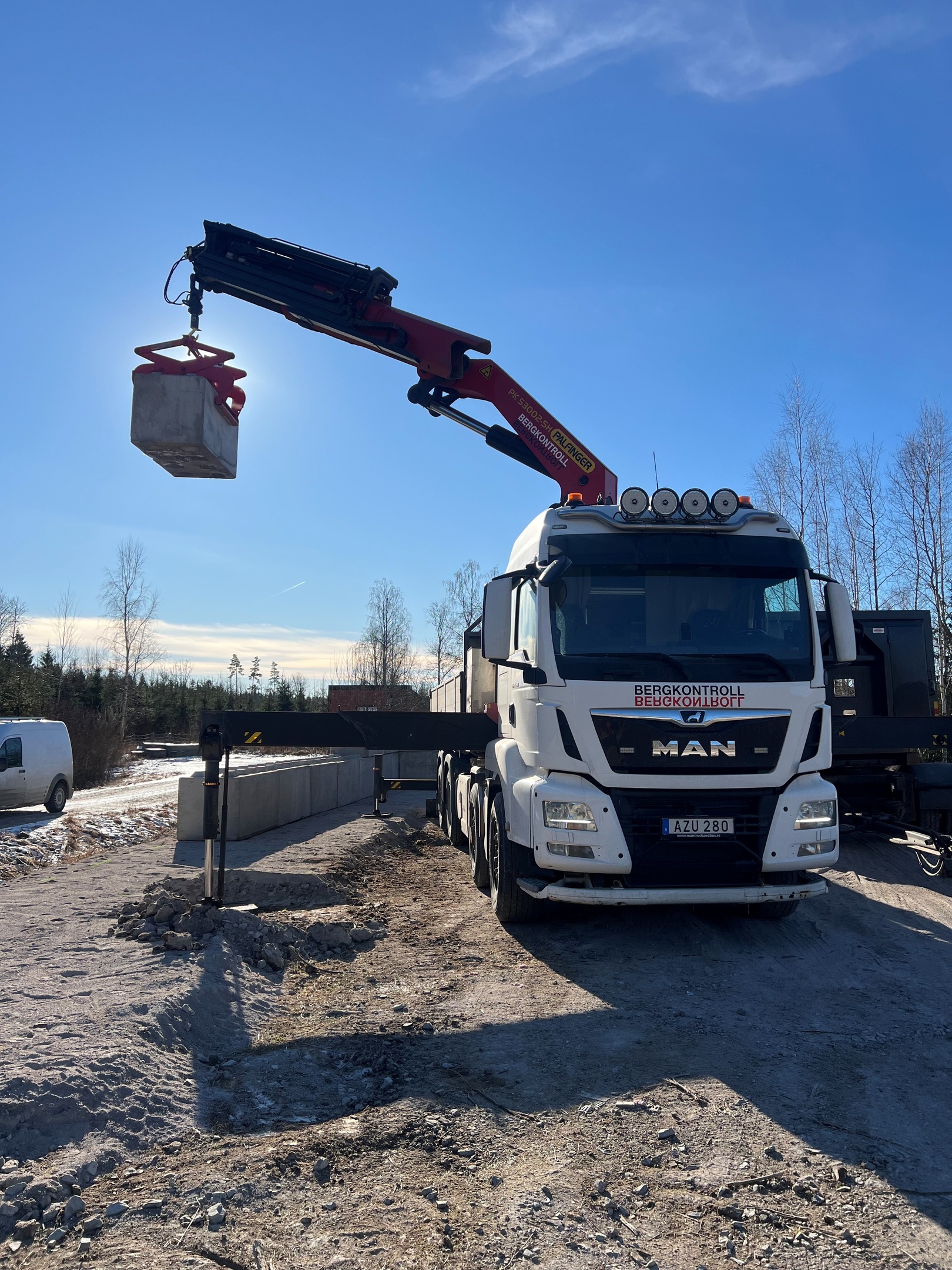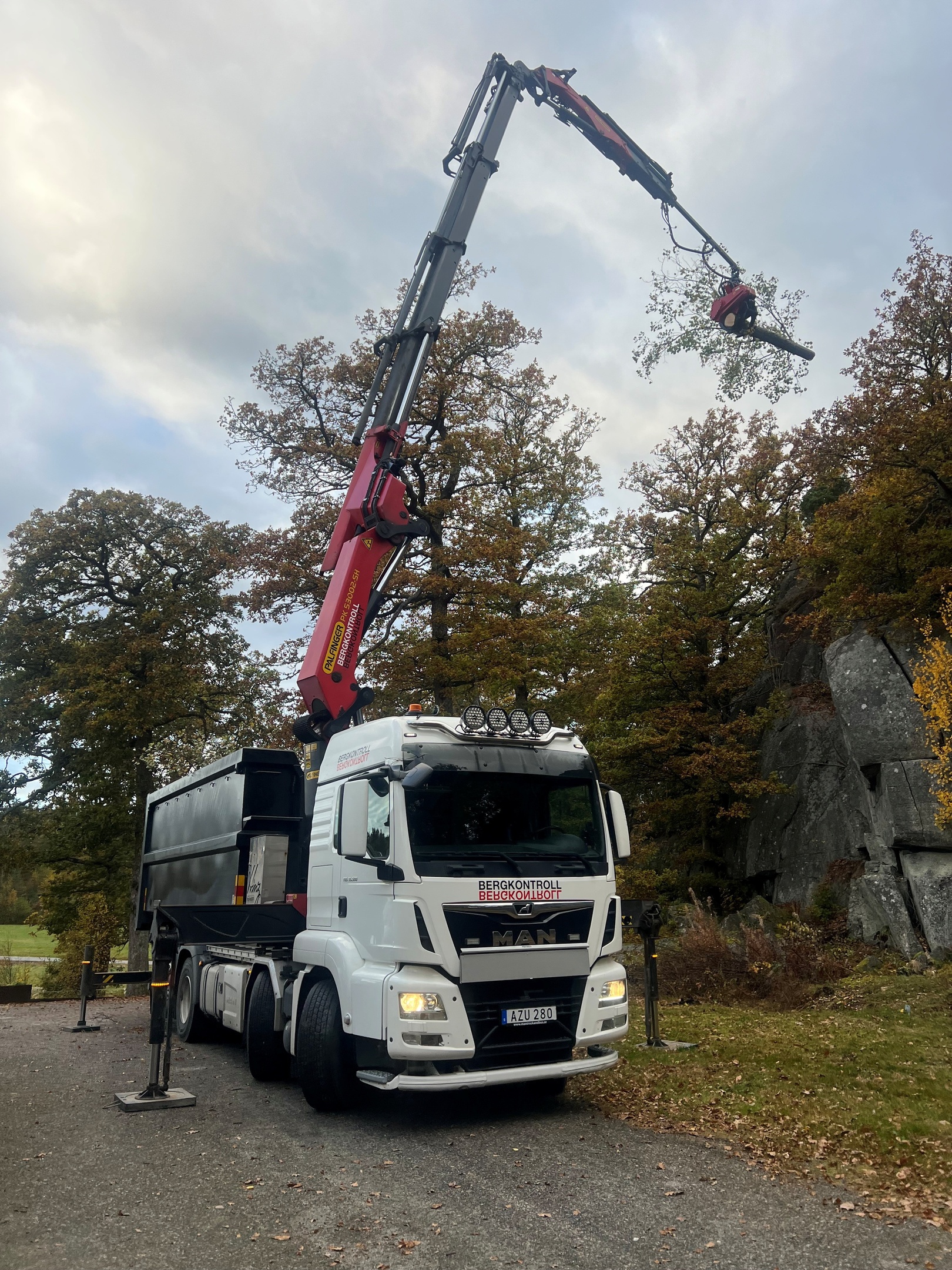 Säkra lyft med kranbil av tunga material, maskiner och utrustning. Transportlösningar och planering av effektiv logistik. Trädfällning (trädplockning) med gripsåg mm.